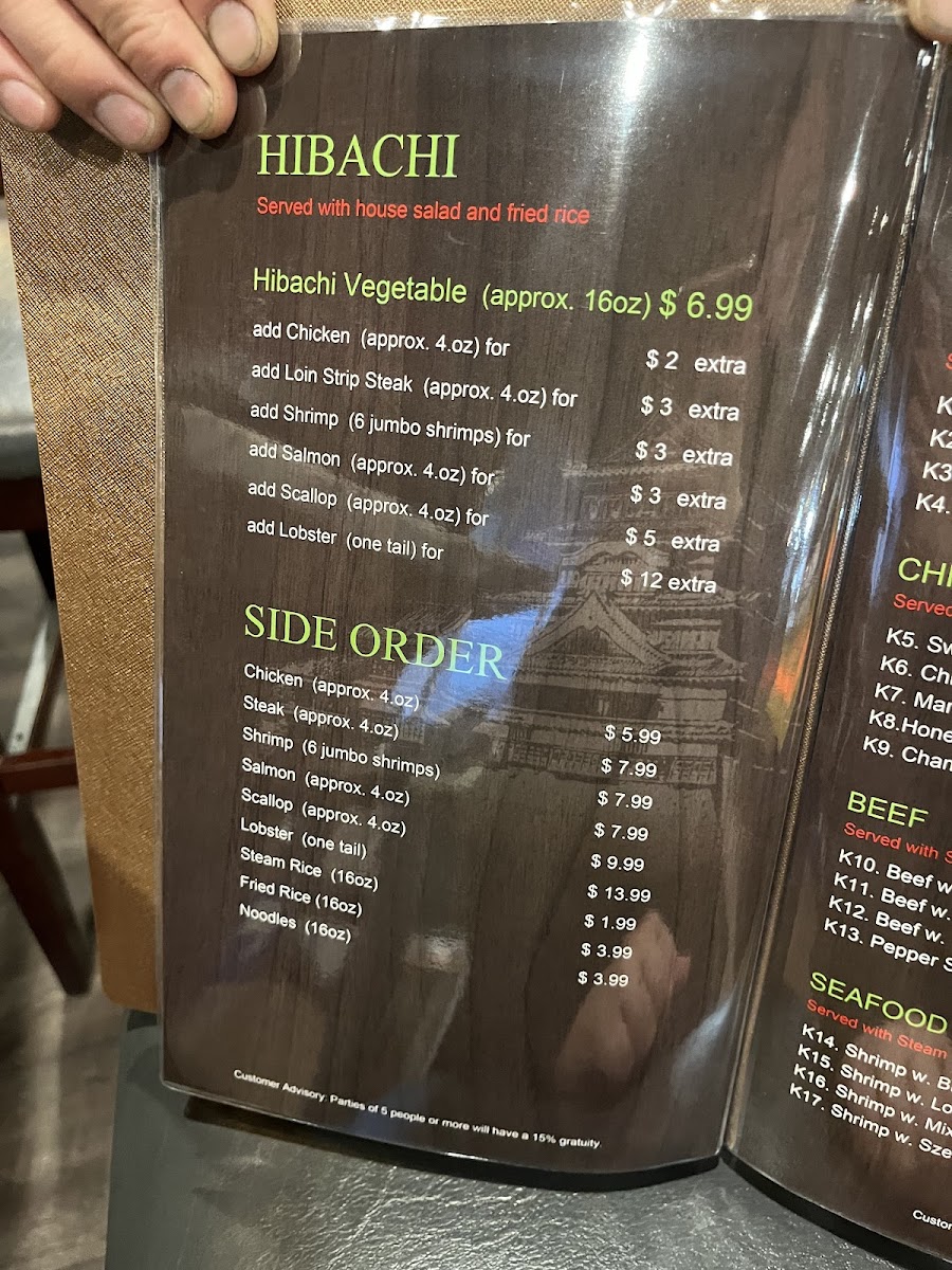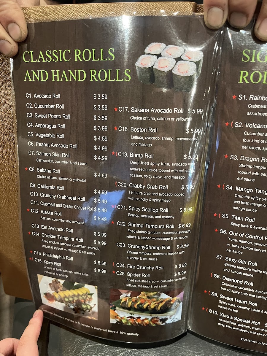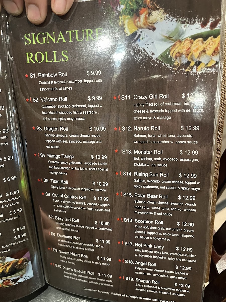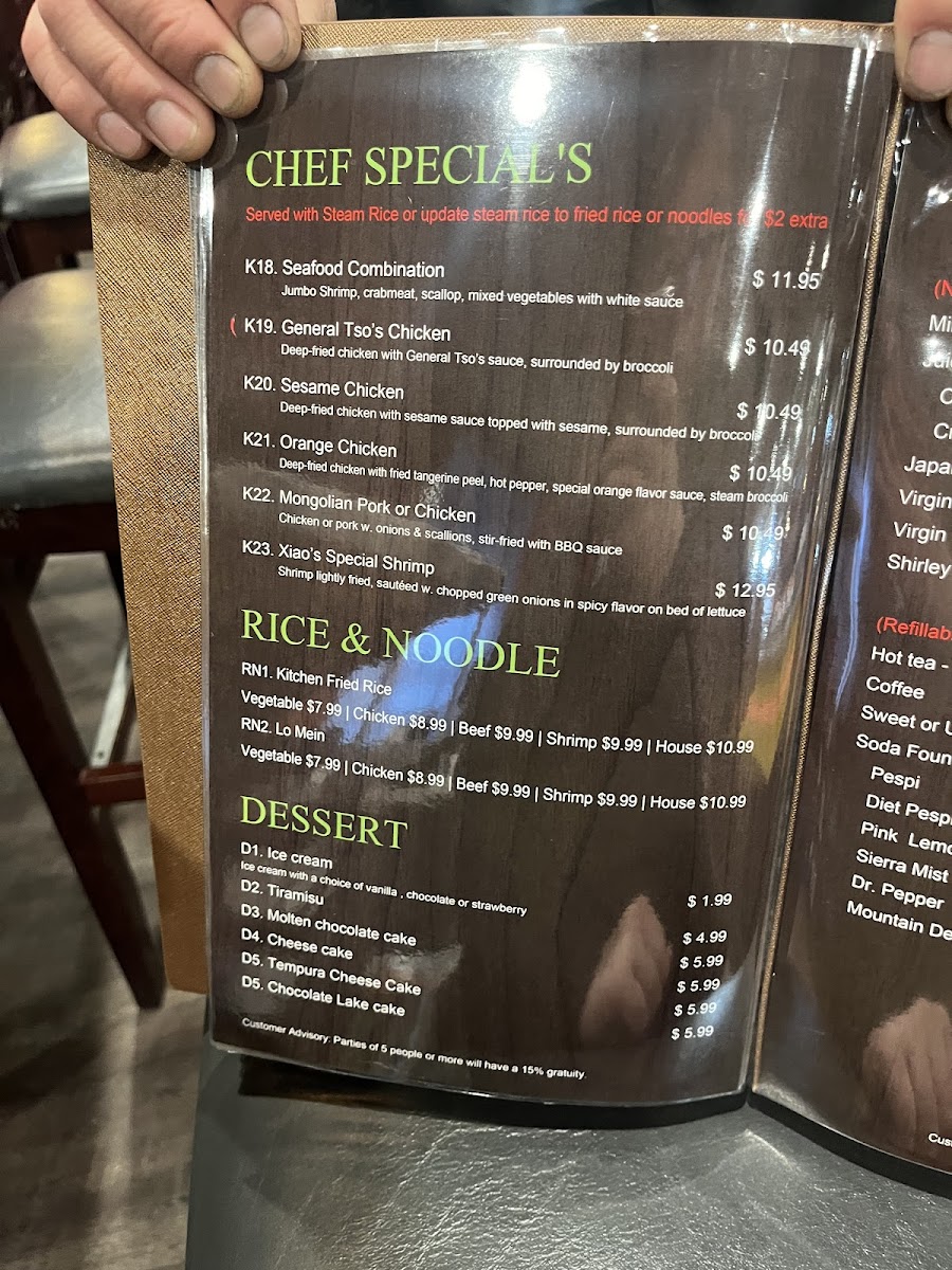 Xiaos' Buffet Hibachi & Sushi offers a broad and diverse menu, catering to a variety of tastes. For appetizers, you can enjoy crispy treats like Spring Roll and Egg Roll, or opt for something savory like Crab Rangoon and Pork Dumplings. Sushi lovers will appreciate the Tuna Martini, Sexy White Tuna, and the zesty Jalapeño Yellowtail. The salads are also a highlight, with options like House Salad, Seaweed Salad, and the delicious Kani Salad. Moving on to the chef specials, dishes like General Tso's Chicken, Mongolian Pork or Chicken, and Orange Chicken stand out, offering satisfying and flavorful choices. For dessert, diners can indulge in treats such as Molten Chocolate Cake, Tiramisu, or the tempting Tempura Cheese Cake. The restaurant also offers various side orders like Chicken, Steak, Shrimp, and Scallop, as well as hearty sushi bar entrees like Sashimi Dinner, Sushi & Sashimi Combo, and the mouthwatering Unagi Don. If you're in the mood for more nigiri or sashimi, the Shrimp and White Tuna options are sure to please. Vegetarians can opt for the String Bean Vegetable or Mixed Vegetable dishes, while chicken lovers will enjoy choices like Sweet & Sour Chicken and Honey Chicken. With such an extensive selection, Xiaos' Buffet Hibachi & Sushi offers a memorable dining experience with something for everyone.